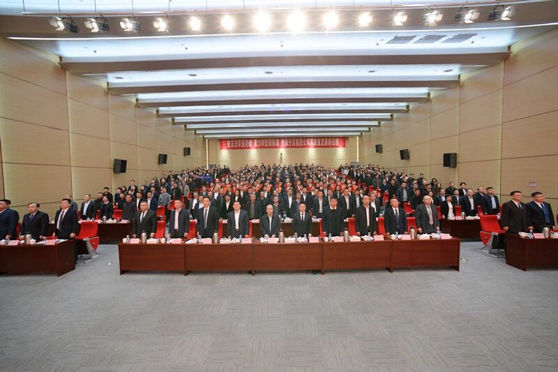 上午9时,大会在雄壮的国歌声中开幕。会场气氛热烈。主席台上方悬挂着“山东鲁泰控股集团2025年度总结表彰暨一届九次职工(工会会员)代表大会”会标,帷幕正中是熠熠生辉的鲁泰徽标,十面鲜艳的红旗分列两侧,庄重醒目。主席台正对面上方悬挂着“奋发进取强突破 聚力转型谱新篇 全面开启集团公司高质量发展新征程”的横幅,鼓舞人心,凝聚干劲。