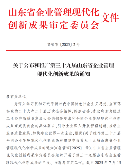10月31日,第三十九届山东省企业管理现代化创新成果获奖名单发布,研发中心2项成果获奖,在该平台获奖数量和获奖级别上再创新高。其中《新材料企业全过程销售管理的创新实践》荣获二等奖,《研发人员职业发展双通道的创新构建与实践应用》荣获三等奖。