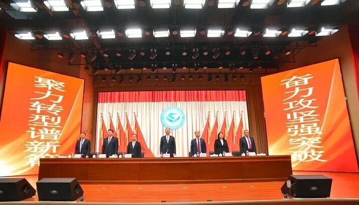 上午9时,大会在雄壮的国歌声中开幕。会场气氛热烈。主席台上方悬挂着“山东鲁泰控股集团2025年度总结表彰暨一届九次职工(工会会员)代表大会”会标,帷幕正中是熠熠生辉的鲁泰徽标,十面鲜艳的红旗分列两侧,庄重醒目。主席台正对面上方悬挂着“奋发进取强突破 聚力转型谱新篇 全面开启集团公司高质量发展新征程”的横幅,鼓舞人心,凝聚干劲。